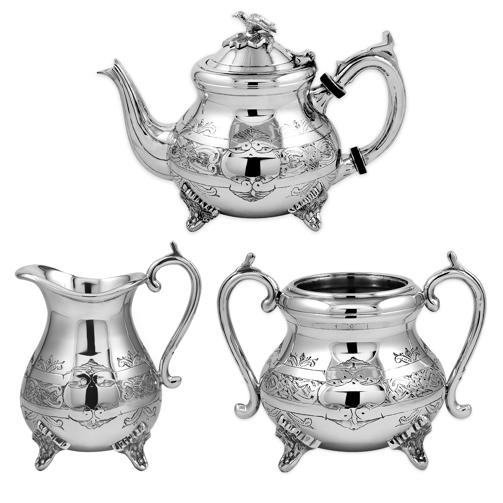 Louis Philippe Tea Pot, Sugar And Cream Engraved Set